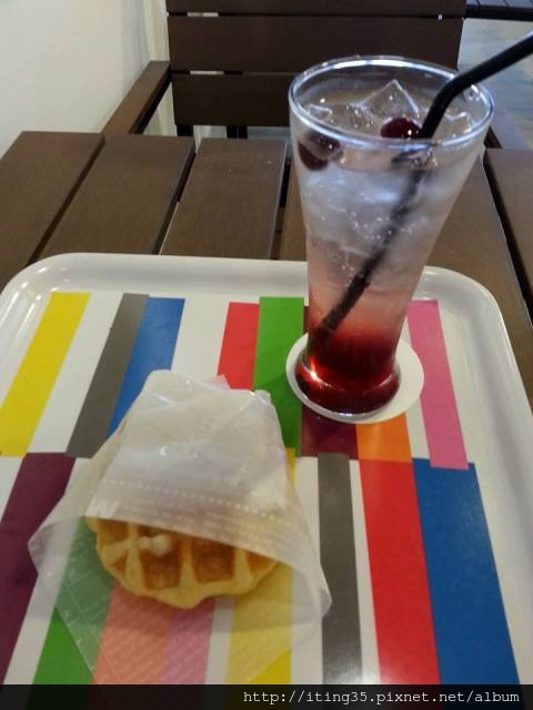 快中午的時刻正在天母的街頭,大熱天的走著也想找個地方先窩一下,看見這家新開幕的『MY waffle』,對於比利時鬆餅有著某種程度的害怕,還是走了進去,看了一下DM,目前點飲品打卡按讚有送原味比利時鬆餅,那可以來嚐嚐~
