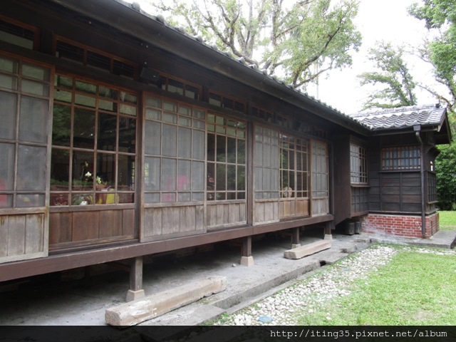 整座館舍為一採日式風格濃厚的建築,木頭色的外觀雖有些許斑駁,但藏不住的歷史痕跡卻也呈現出一絲復古氣息,而鋪滿白色雅石的步道,在煦煦暖陽下更顯得淡雅脫俗。