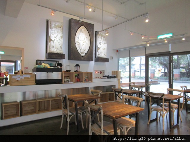 一家位在台北教育大學內的學院咖啡館,在科技大樓捷運站附近,雖然是設立在校園內,但因店主人對藝術文化的薰陶,讓整個空間圍繞著濃濃的藝術氛圍。再加上四面玻璃帷幕環繞的透明感,以及牆上高掛著美術館百年收藏的義大利石雕作品,將藝術生活化完全融入最平凡的生活中。
