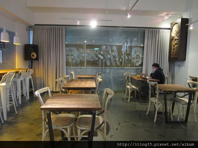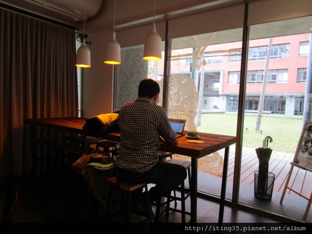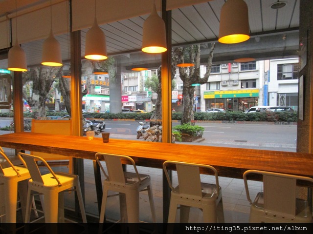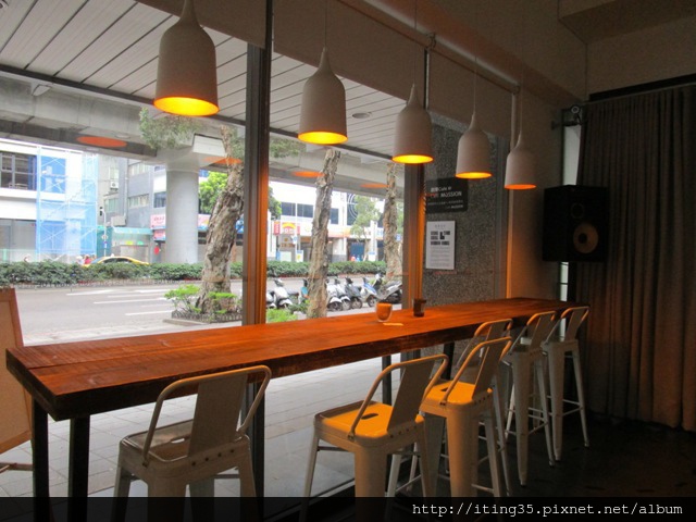 木質系的桌椅配上柔和的燈光,打造了一個有溫度的空間,坐在落地窗前啜飲一杯咖啡是很舒服的