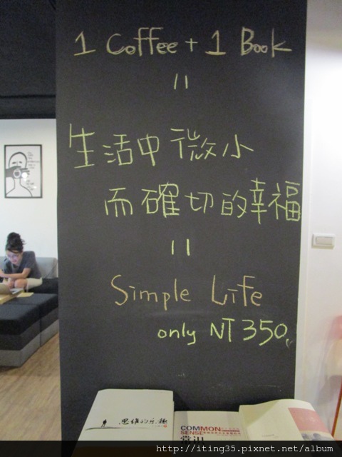 走進巷內一眼即可看到黑色牆面的外觀,看板上的簡體字更是醒目,現代簡約的裝潢設計,書牆就是最大特色,我很喜歡閱讀是我會喜歡的店。店裡單品咖啡全由台灣達人名店供應咖啡豆,此外店家設計的套餐是一杯咖啡佐一本書。午後的時光窩在喜歡的角落,輕啜一杯咖啡配上一本好書,很悠然自得~~~