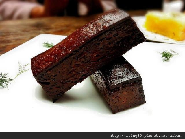 跟市面上的可麗露大不同,一般通常看到的是圓形口感較為濕潤鬆軟,這裡的是磚形想要呈現的是吃起來外脆內軟,雖然有很棒的創意構想,但我們吃到的可麗露真的是跟金磚一樣硬,其實已經到牙齒無法咬動,而且四角已經焦黑了,算是失敗品,三個人都一樣咬不動,是我們下午茶當中美中不足的。