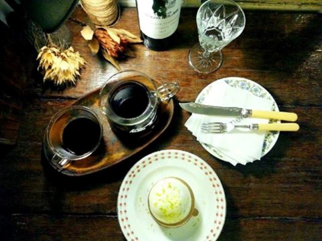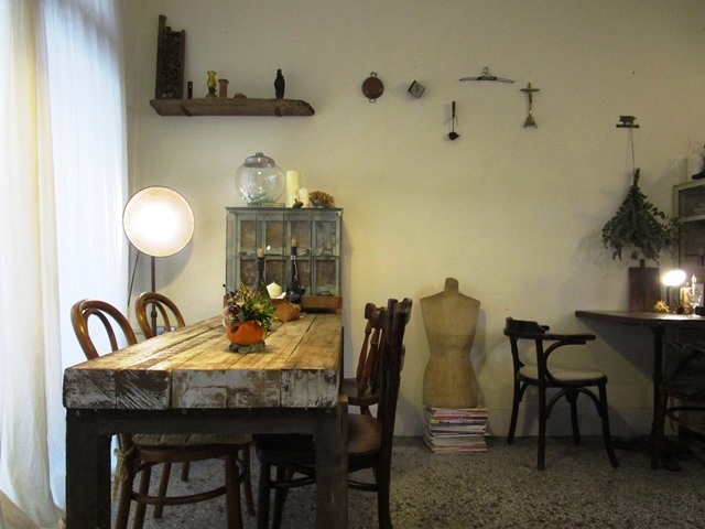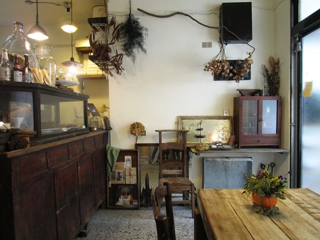 比起在二樓的三店又寬了許多,住宅區內擁有一份靜謐的環境,用老物件與綠色植栽打造的露天庭園區也很舒服,老屋內注入了店主人用心的巧思,私藏的古物與老器具、乾燥花都是美的化身,內用區只有一大一小的座位,環境的營造就像到朋友家喝咖啡一樣舒服。