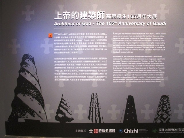 在高第的作品中建築、藝術、科學是密不可分的要素,模型是他最主要的創作工具、建築則是他巨大且豐厚的實驗成果。本次《上帝的建築師:高第誕生165週年大展》世界巡展,共展出來自巴塞隆納聖家堂、加泰隆尼亞國家藝術博物館、加泰隆尼亞基金會-米拉之家、維森斯之家與私人收藏等63件建築模型,其中包含5件超過一層樓高的巨型模型,且台灣站特別規劃實驗互動區,透過親手操作模型認識高第的建築結構,並邀請本土藝術團隊以光影、新媒體互動、大型裝置等各種虛實創作媒材向高第致敬。
