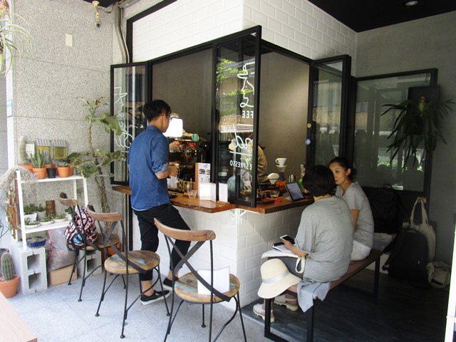 搬到新據點的「Coffee Sind」,不再是被多肉植物包圍的綠地,但卻是更真實的呈現店主人想要表達的咖啡意境。忠孝新生站5號出口走出來往右看,華夏一樓的小天地,還是有小小的有肉植物散置每個角落,是咖啡外帶吧的型態,讓客人悠閒感受街邊喝咖啡的氛圍,幾張木質座椅圍繞著吧檯出杯區,可以近距離聞到咖啡香,更可以與店主閒話家常,小地方距離近多了與人互動的溫暖,還蠻喜歡這樣簡單有質感的小空間。