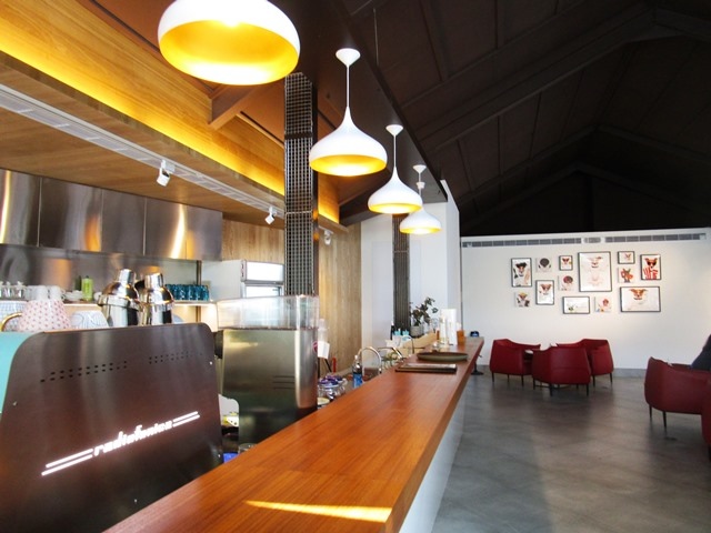 而室內以白色調為主,紅色沙發是整個座位的主色調,紅白配高貴不貴又具設計感,而靠窗整組灰色亮麗色彩的沙發座是一亮點,內用坐位不多間距夠大也舒服,沉穩又奔放的感覺很適合一群姊妹掏聚會。豪氣的流線吧檯料理區,那台造型大器的咖啡機很美,整體給人華麗高貴不失風雅的氣質。